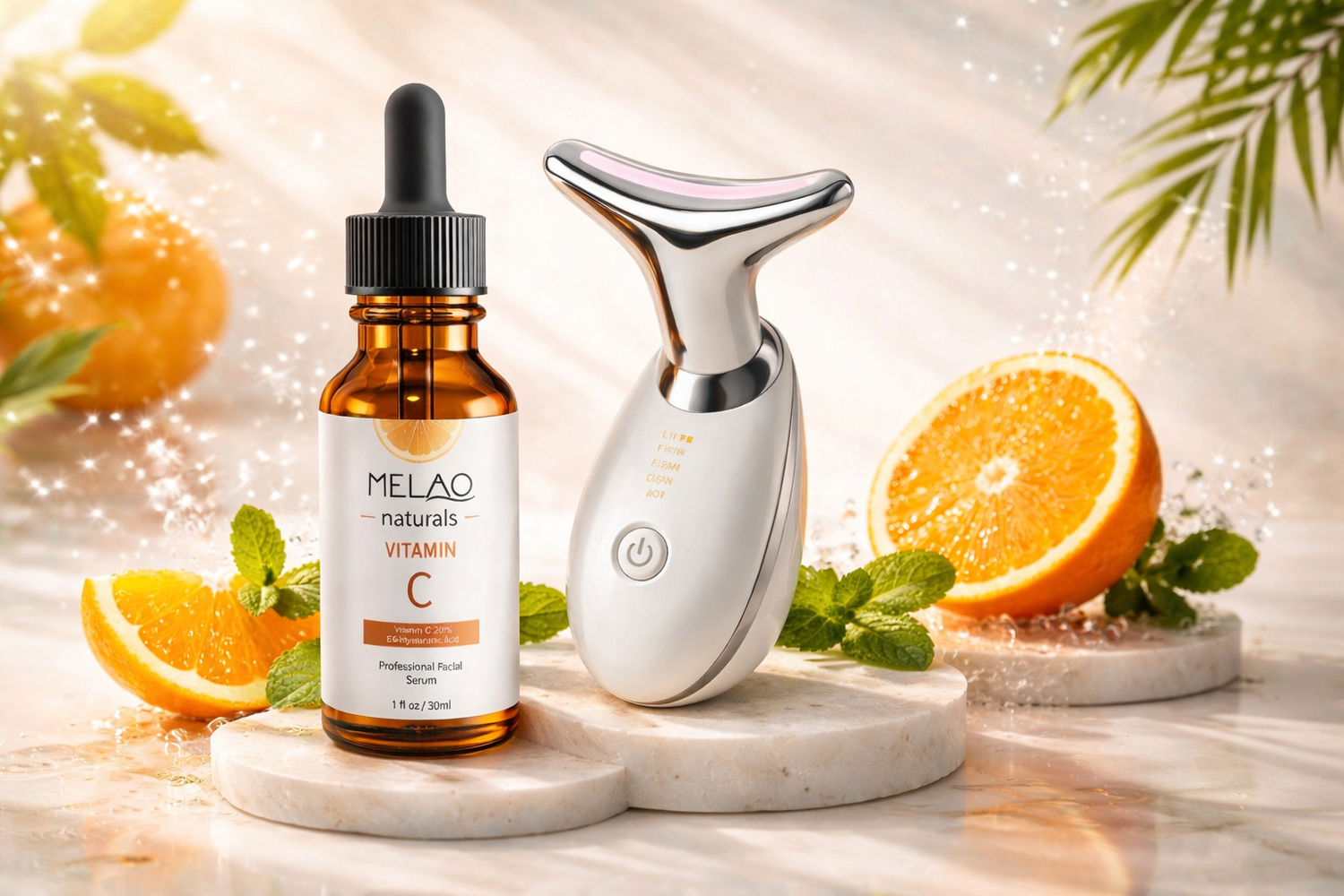 Our Vitamin C Serum, rich in powerful antioxidants, helps brighten the skin, fight free radicals, and support collagen production.When paired with our facial firming device, micro-vibrations and gentle heat enhance absorption, boost circulation, and help the serum penetrate deeper—resulting in firmer, smoother, and more radiant-looking skin.✨ Together, they turn your daily skincare routine into a professional-level treatment at home.